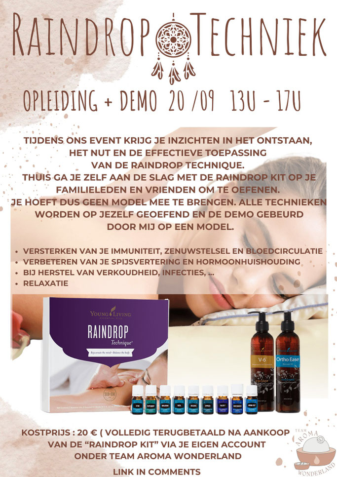 verhogen door deze te gaan aanbieden of wil je gewoon je eigen gezin ondersteunen, de Raindrop Technique kan op iedereen worden ingezet